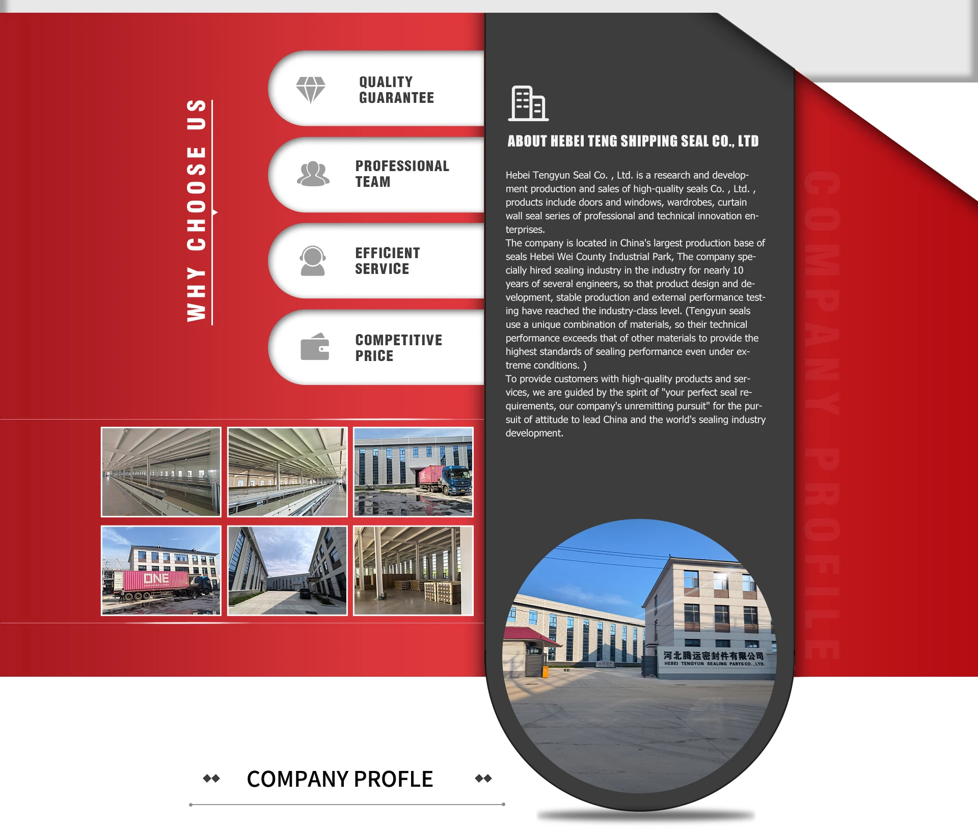 Principaux produits : Joints d'étanchéité de porte et de fenêtre, joints d'étanchéité en forme de PU, joints en PVC/TPE/Silicone, bandes d'étanchéité en EPDM, joints de fond de porte